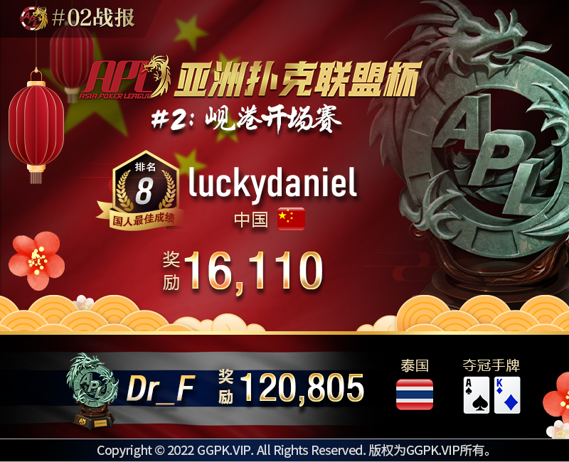 APL#2: 岘港开场赛由泰国玩家 Dr_F 夺冠,国人luckydaniel 则名列前茅获得第8名,成为本场国人最佳成绩。